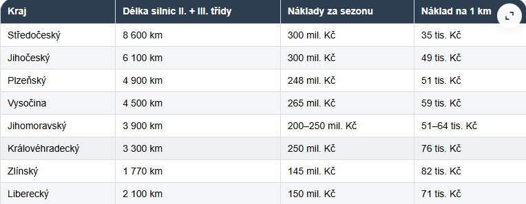 - Zlínský kraj: roční rozpočet zimní údržby asi 145 mil. Kč, přičemž jen leden 2026 stál 79,5 mil. Kč. (rszk.cz)